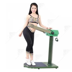 Đứng trên bàn máy tháo dây ra khỏi chỗ móc dây. vòng dây qua vùng đùi sau đó móc trở lại. Tay nắm chặt trên đầu máy , dùng sức kéo căng dây sau đó bật công tắc máy. Chọn chế độ phù hợp với sức chịu đựng của bản thân.